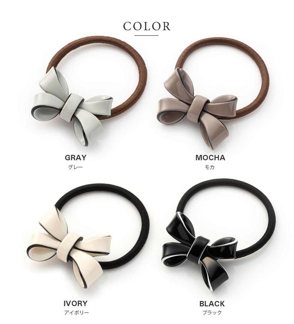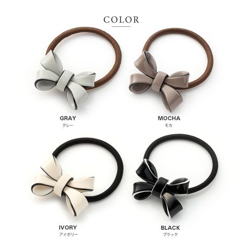 縁部分がバイカラーになったリボンモチーフのヘアゴム。