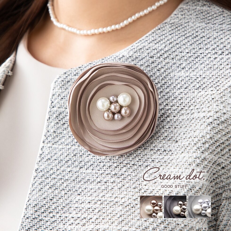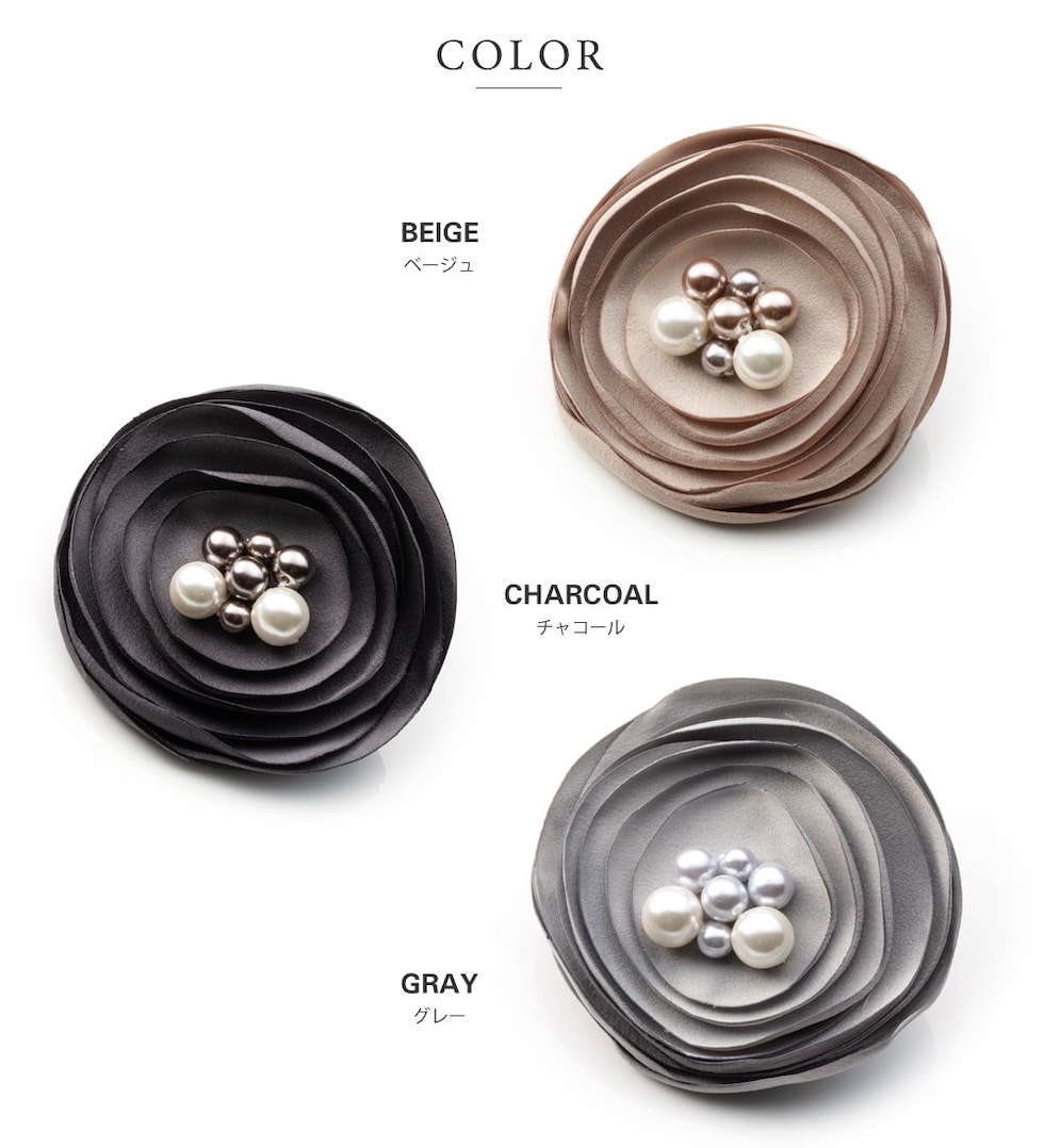 コサージュ フォーマル 卒業式 卒園式 入学式 入園式 ママスーツ フラワー 花びら 平 パール ピン クリップ グレー cream dot ゆうパック [チャコール_ワンサイズ]