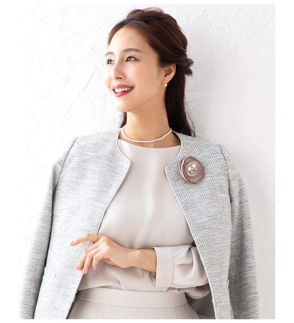 落ち着いた色味とスッキリとしたシルエットで華やかになりすぎずにフォーマルやパーティーシーンに取り入れやすいデザインです。