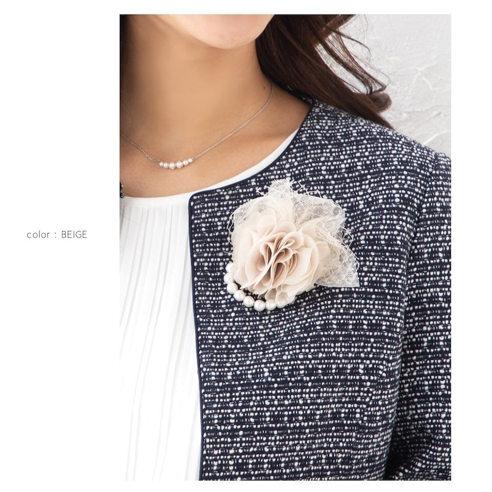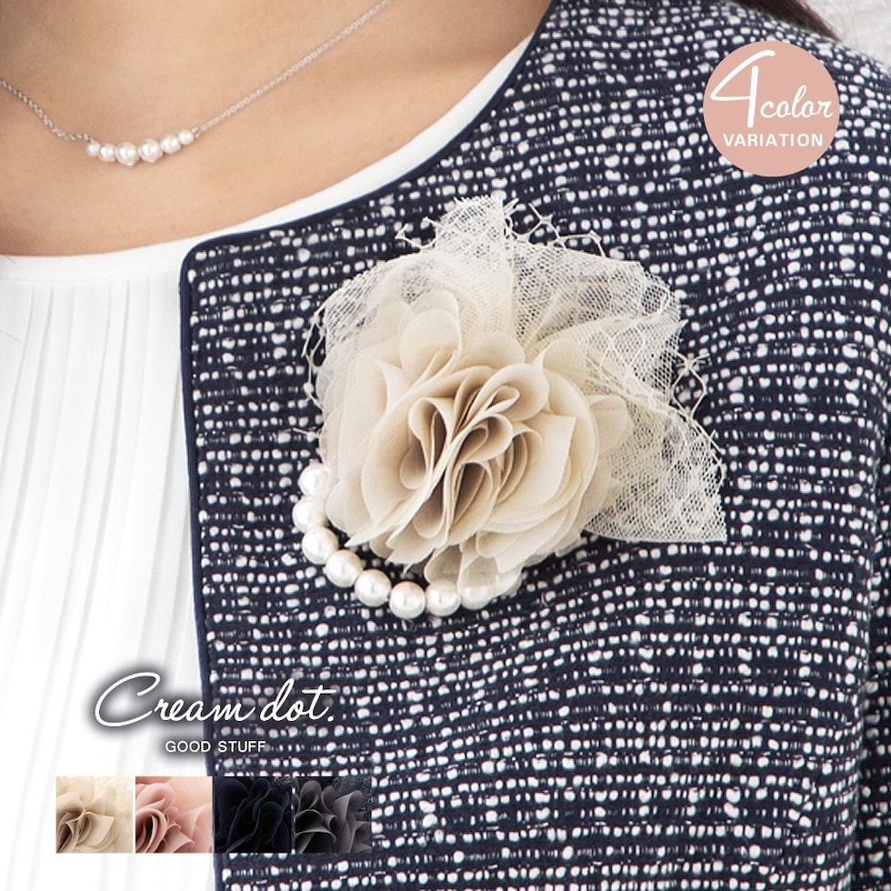 コサージュ フォーマル 卒業式 卒園式 入学式 入園式 ママスーツ フラワー 花びら チュール パール ピン クリップ グレー cream dot ゆうパック [ベージュ_ワンサイズ]