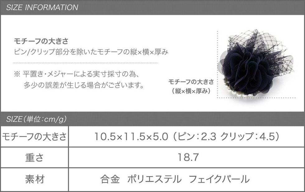 10.5cm×11.5cm×5.0cm(ピン:2.3cm クリップ:4.5cm)
