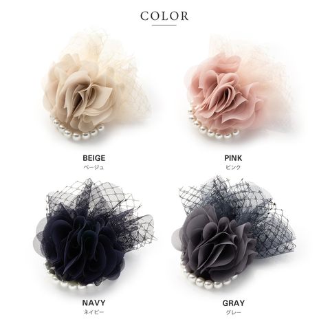 コサージュ フォーマル 卒業式 卒園式 入学式 入園式 ママスーツ フラワー 花びら チュール パール ピン クリップ グレー cream dot ゆうパック [グレー_ワンサイズ]