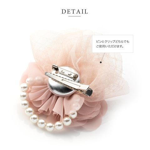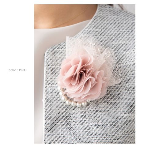 艶めくパールラインやチュールを飾った大人っぽいフラワーコサージュ。