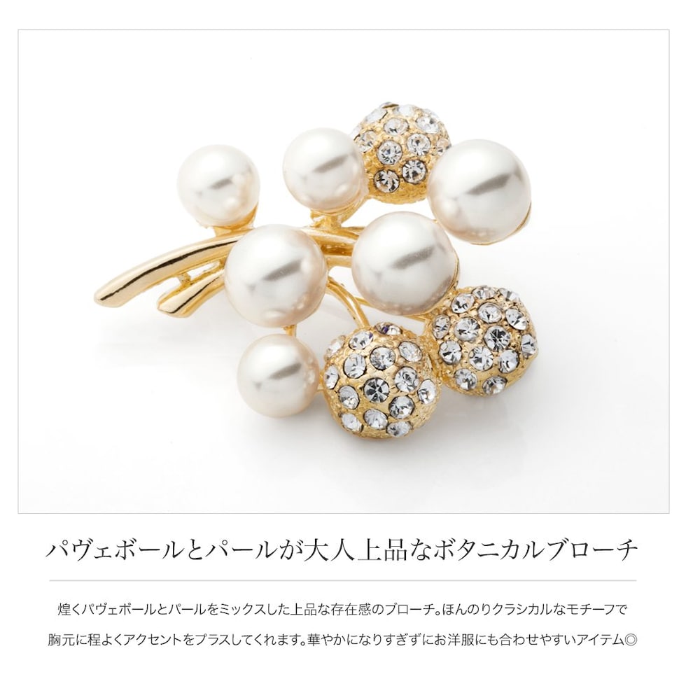煌くパヴェボールとパールをミックスした上品な存在感のブローチ。
