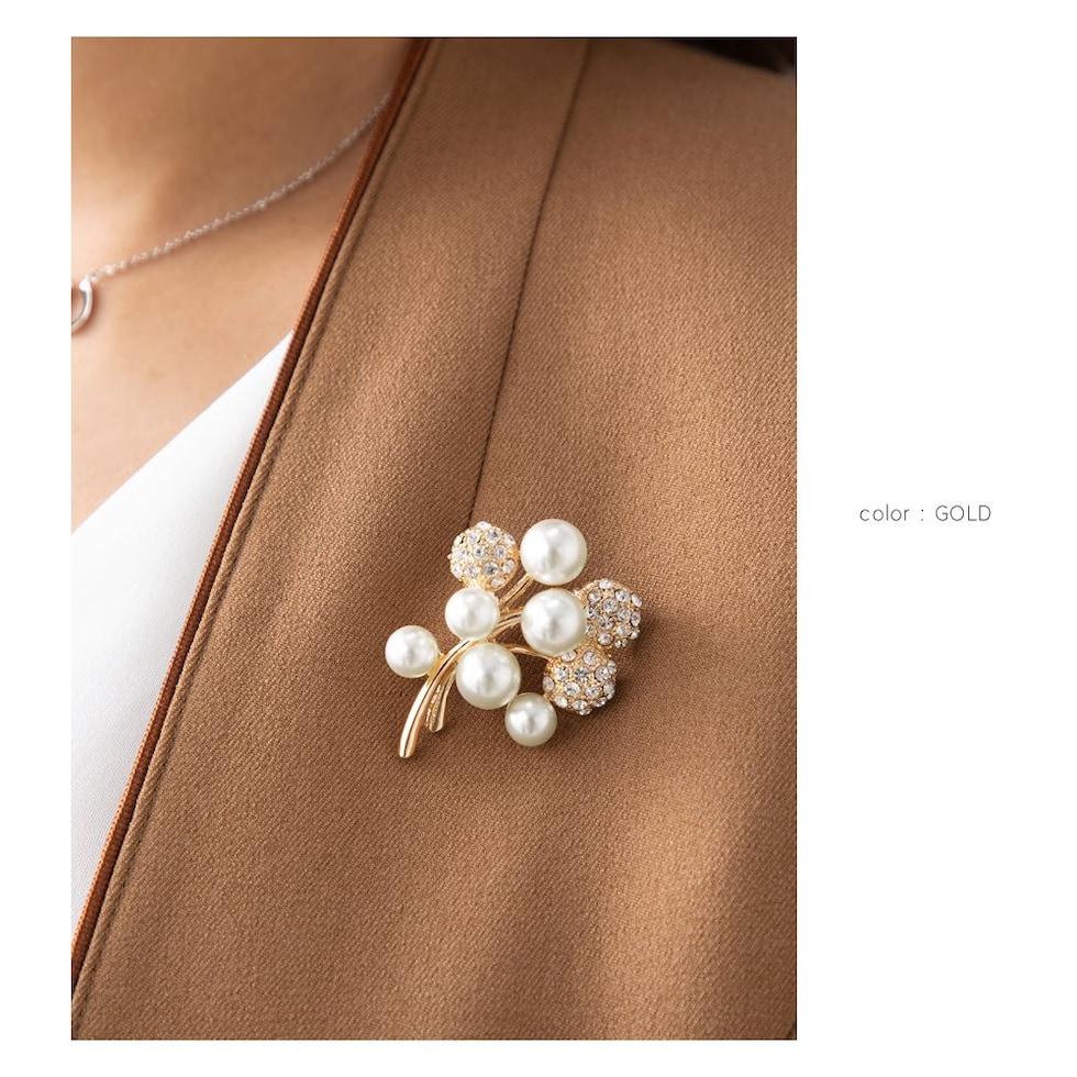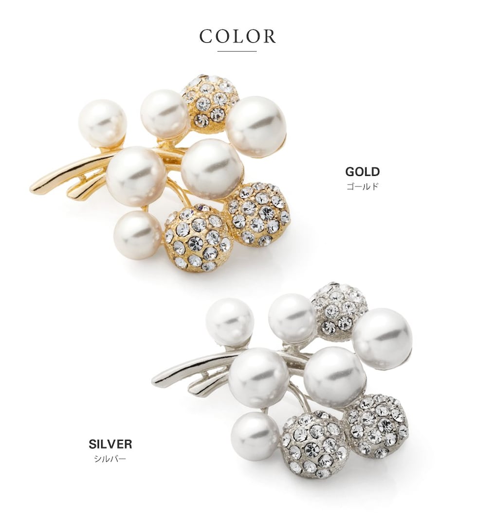 ブローチ フォーマル 卒業式 卒園式 入学式 入園式 ママスーツ コサージュ パール キュービックジルコニア ビジュー パヴェボール ピン cream dot ゆうパケット [シルバー_ワンサイズ]