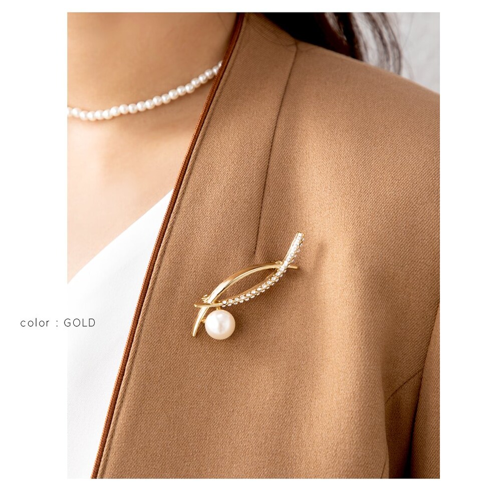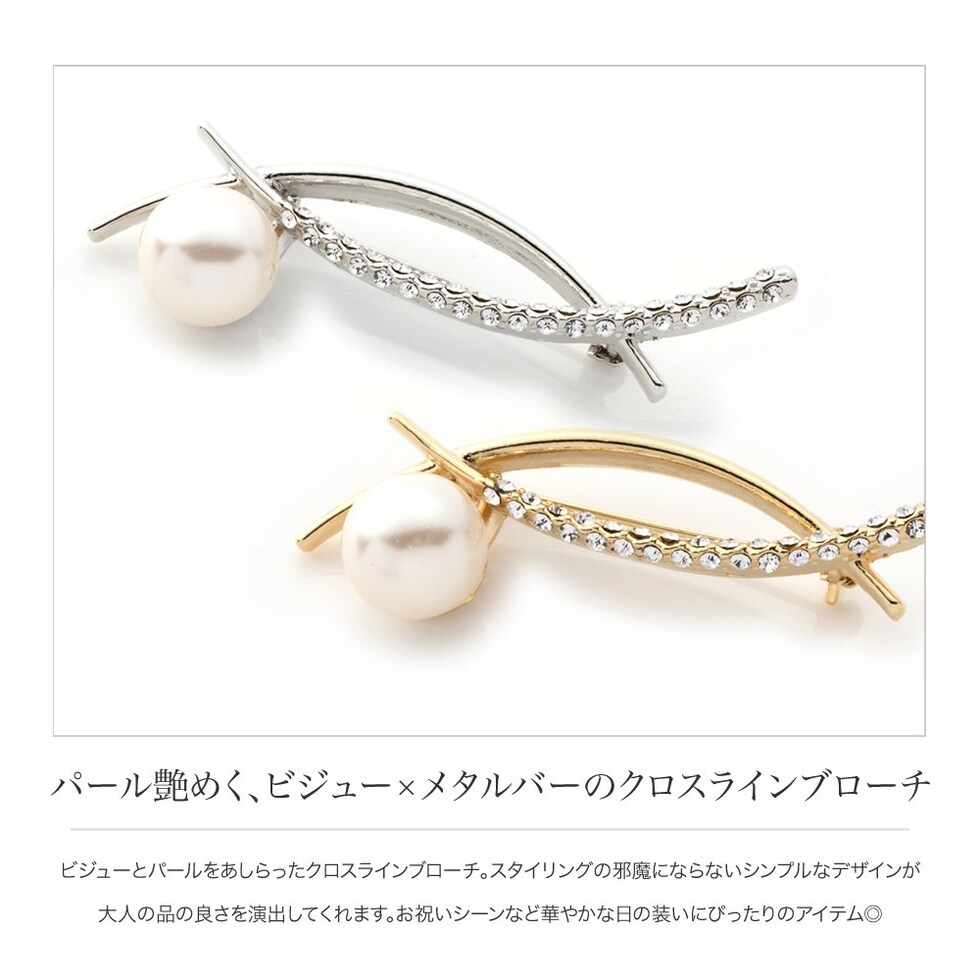 ブローチ フォーマル 卒業式 卒園式 入学式 入園式 ママスーツ コサージュ 一粒パール キュービックジルコニア ビジュー クロス メタル カーブ ピン cream dot ゆうパケット [ゴールド_ワンサイズ]
