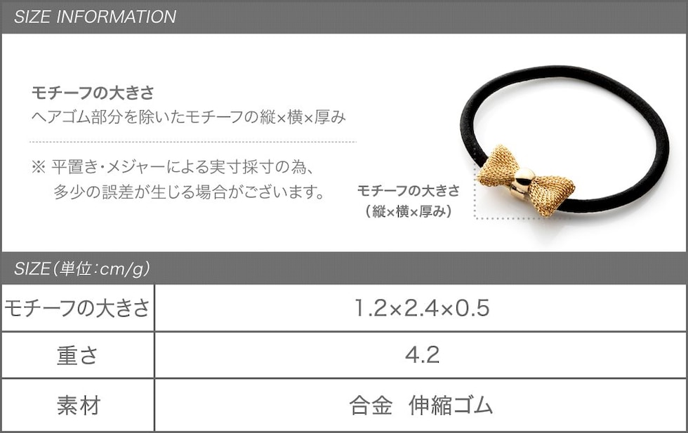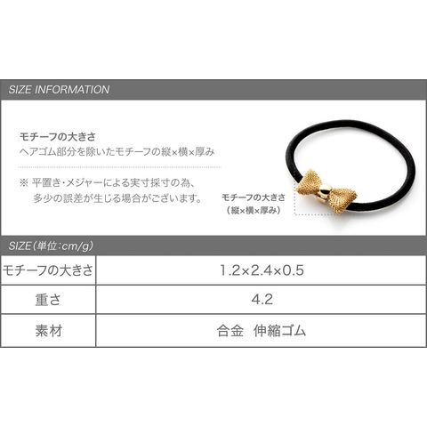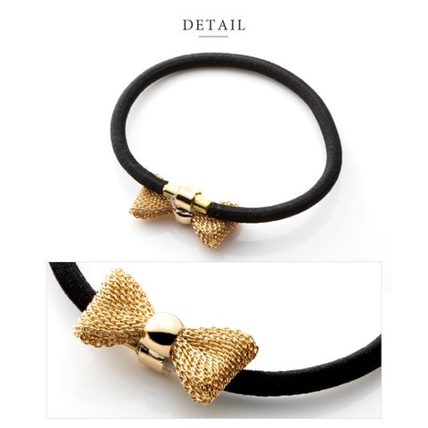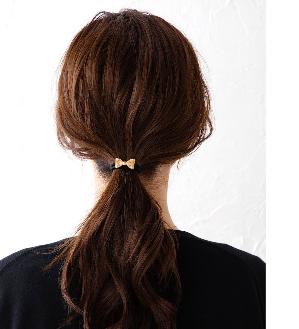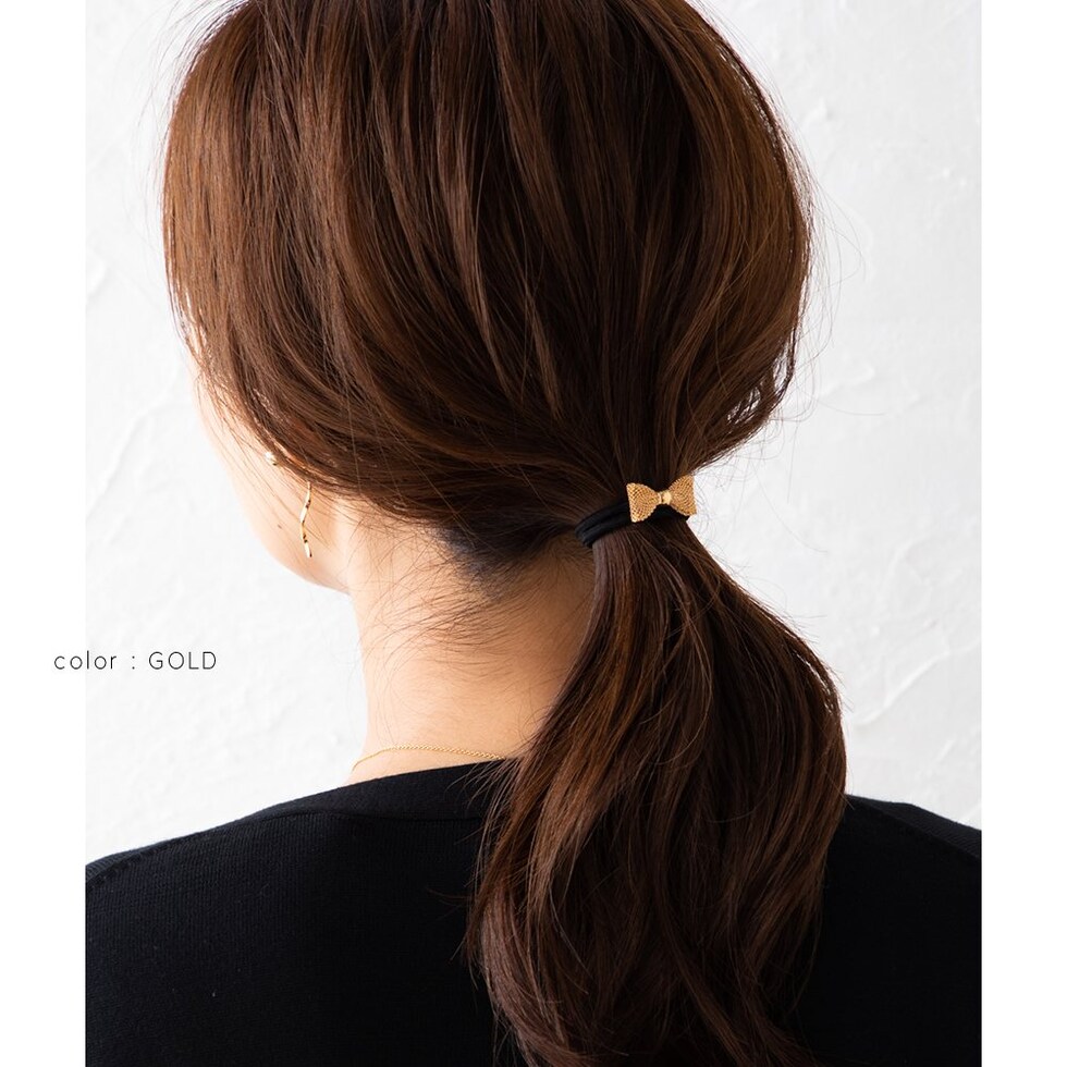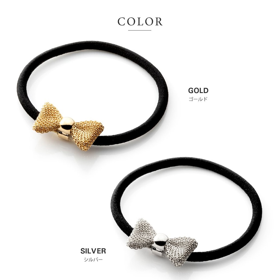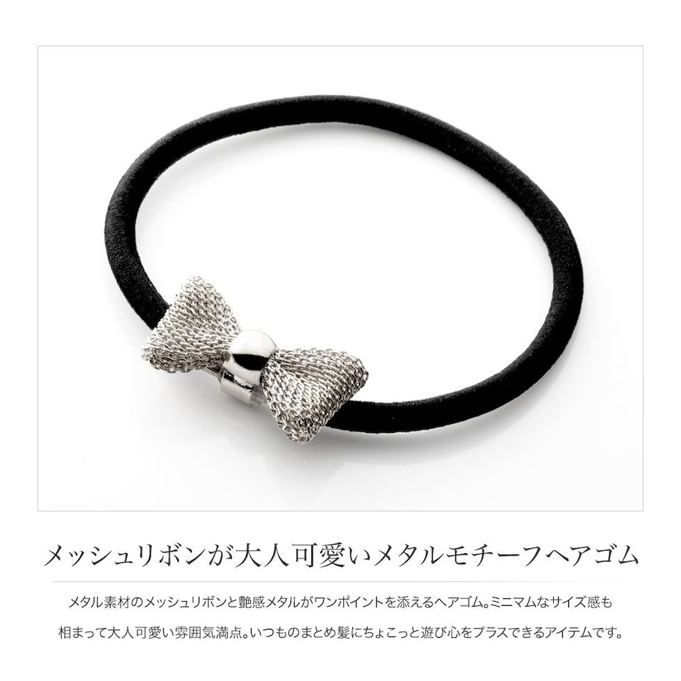 メタル素材のメッシュリボンと艶感メタルがワンポイントを添えるヘアゴム。