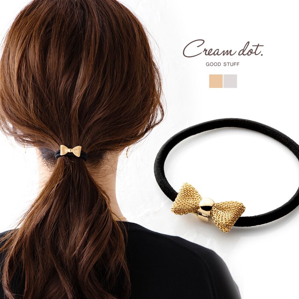 ヘアアクセサリー レディース ヘアゴム 小さめ ミニ 小さい メッシュ メタル リボン cream dot ゆうパケット [シルバー_ワンサイズ]