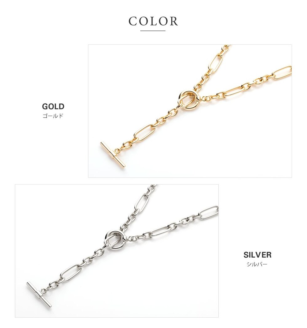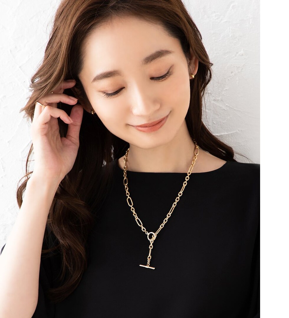 程よくゴツめのチェーンが目を引く大ぶりマンテルネックレス。