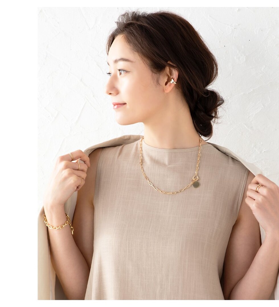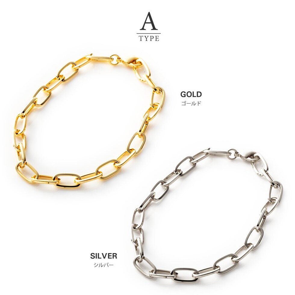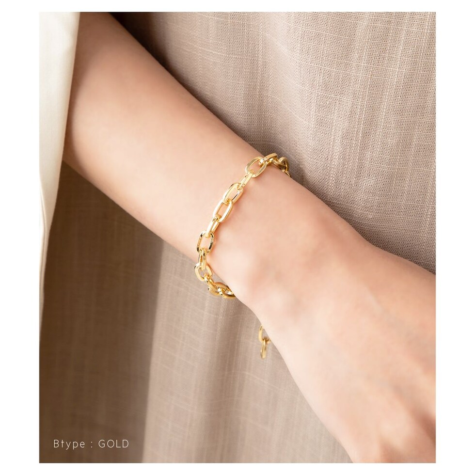 ブレスレット レディース 2タイプ 大ぶり チェーン cream dot ゆうパケット [B:ゴールド_ワンサイズ]