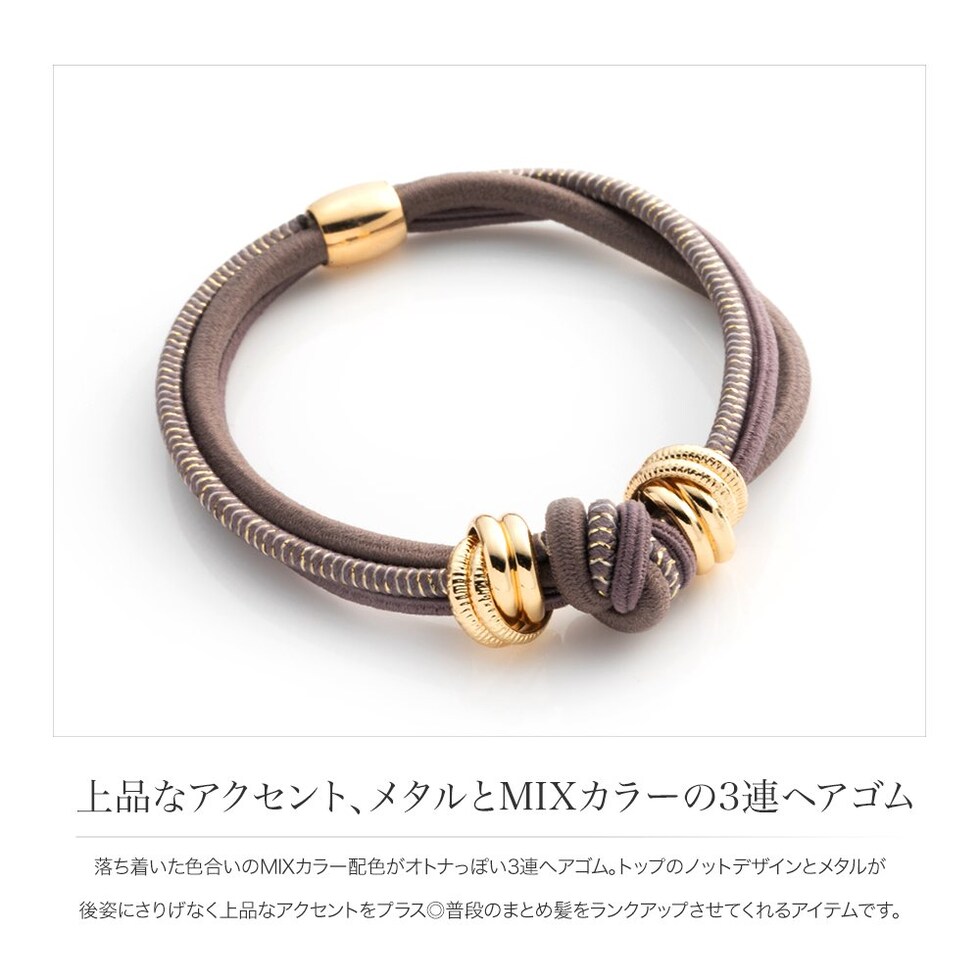 落ち着いた色合いのMIXカラー配色がオトナっぽい3連ヘアゴム。