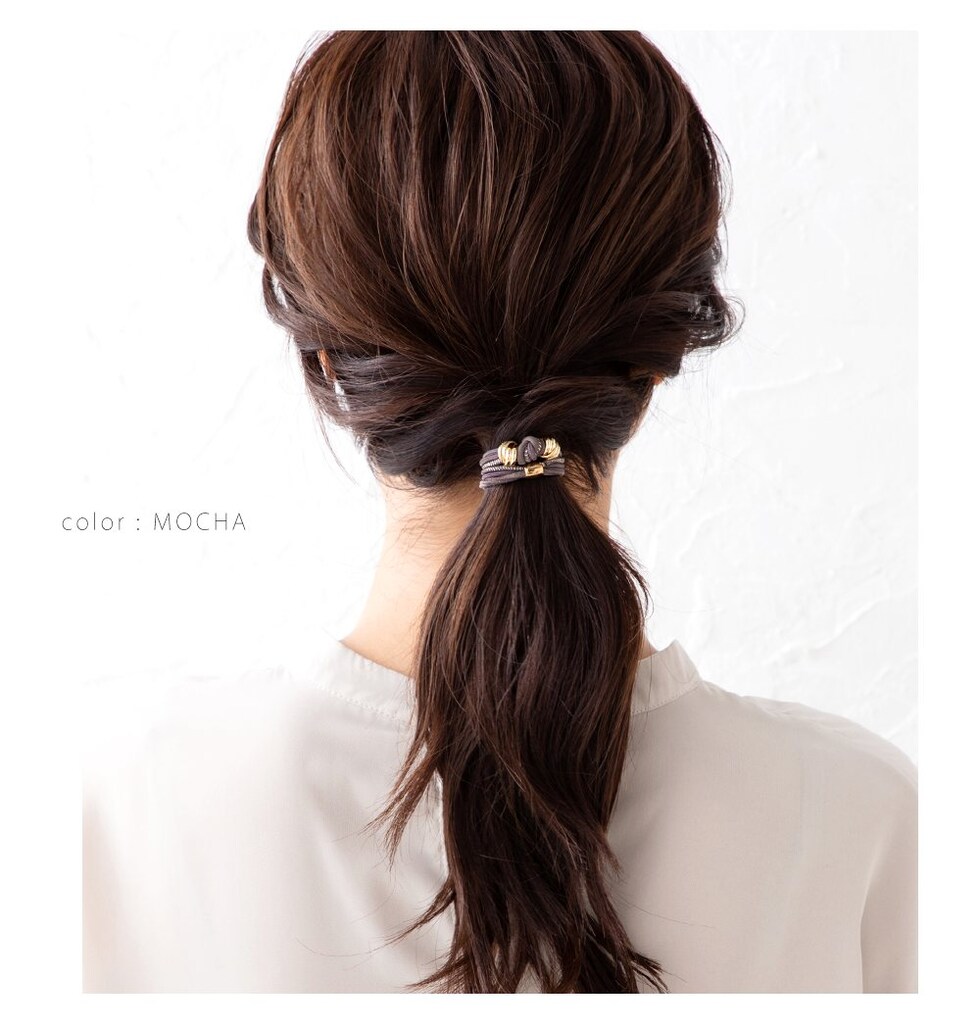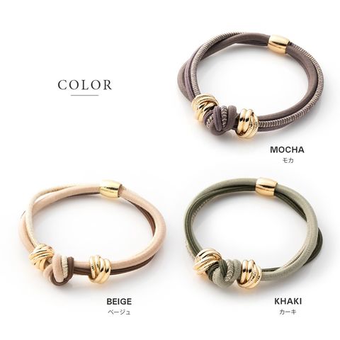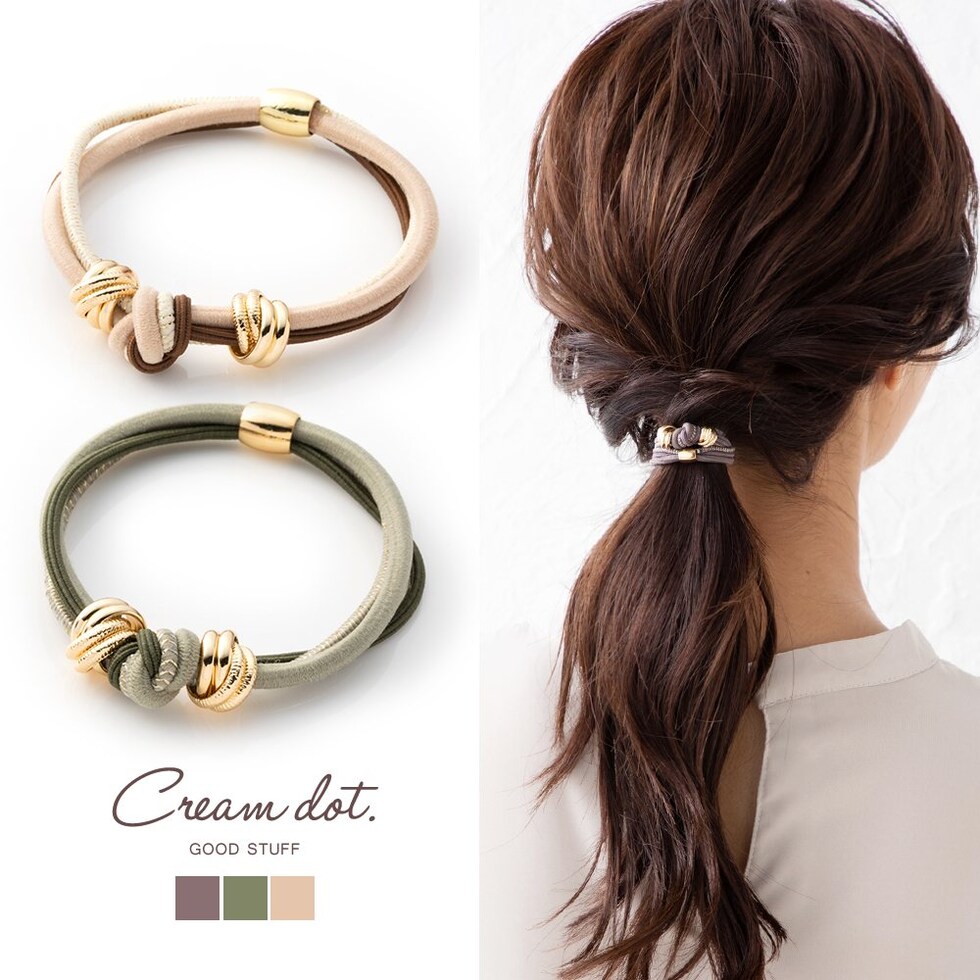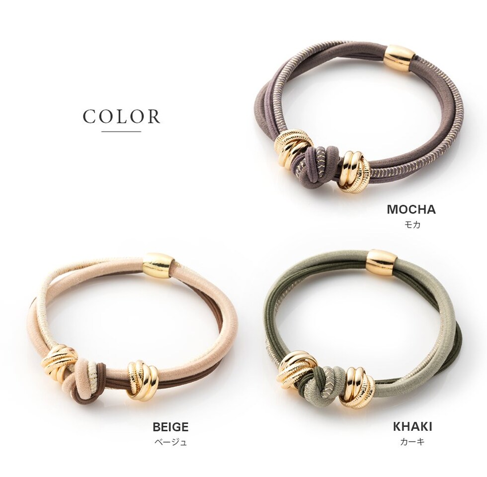 ヘアアクセサリー レディース ヘアゴム メタル 3連 ノット 結び目 カーキ cream dot ゆうパケット [モカ_ワンサイズ]
