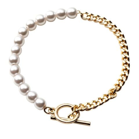 ブレスレット レディース 2タイプ パール チェーン マンテル 切り替え デザイン MIXデザイン cream dot ゆうパケット [B:ゴールド_ワンサイズ]