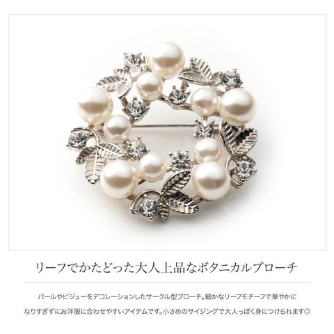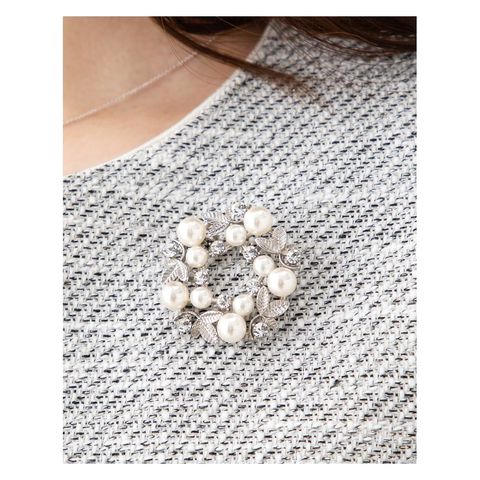 パールやビジューをデコレーションしたサークル型ブローチ。