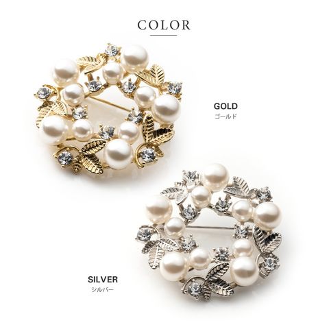 ブローチ フォーマル 卒業式 卒園式 入学式 入園式 ママスーツ コサージュ パール キュービックジルコニア ビジュー リーフ ボタニカル サークル ピン cream dot ゆうパケット [ゴールド_ワンサイズ]