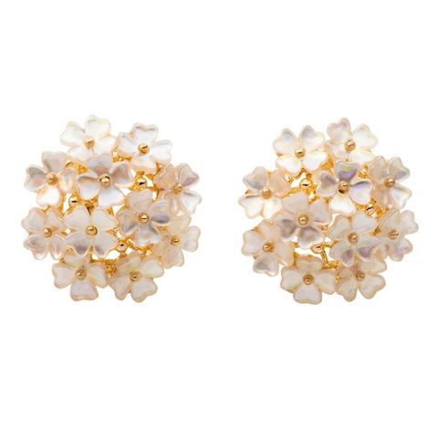 小花を集めた花束のようなデザインが女心くすぐるピアス/イヤリング。無数のフラワーがボリューミーで、淡く艶めく落ち着いた色合いが可愛くなり過ぎず大人レディな印象に。これからの季節にぴったりなアイテムです。
