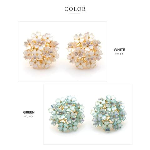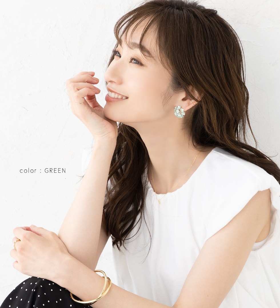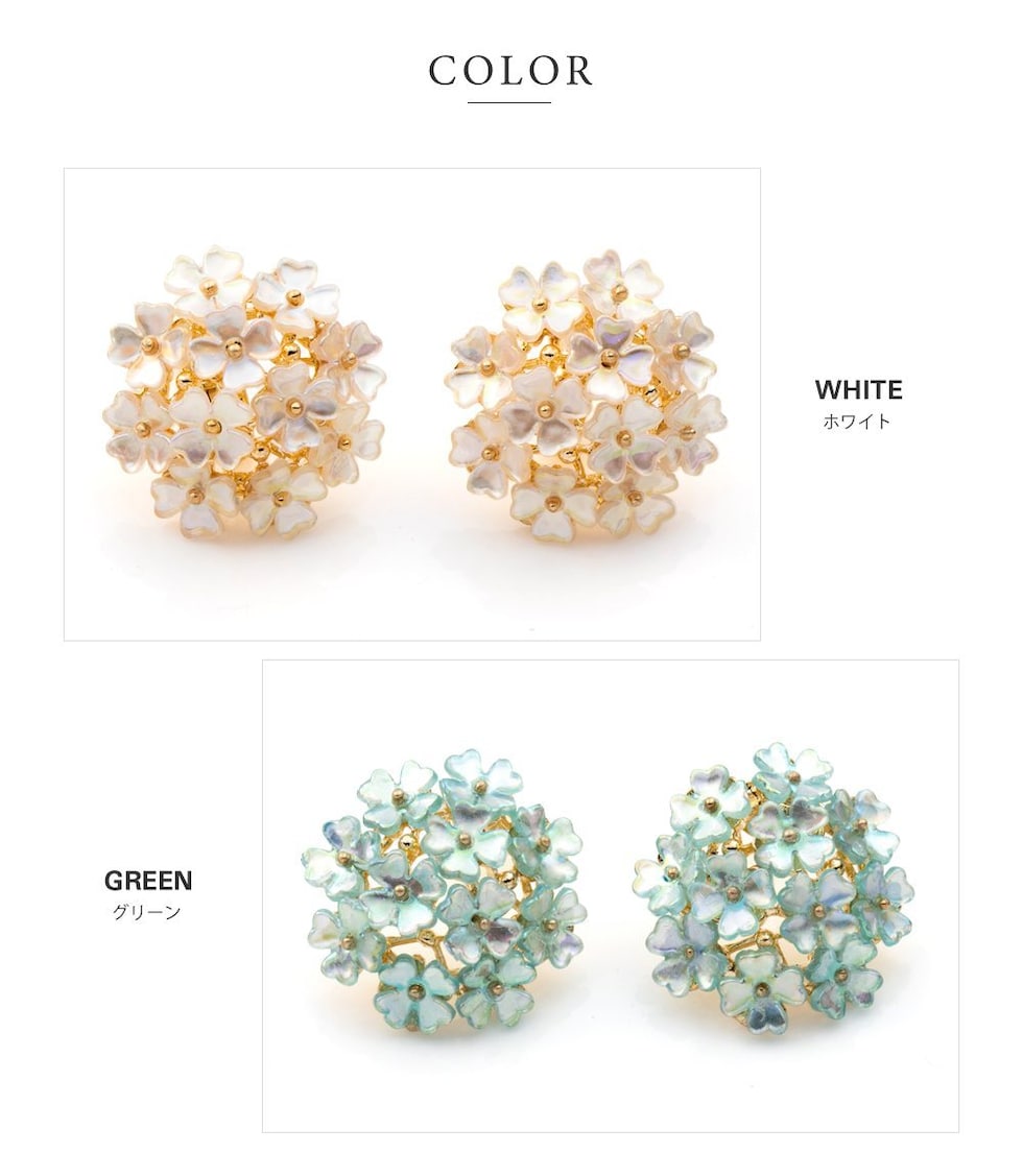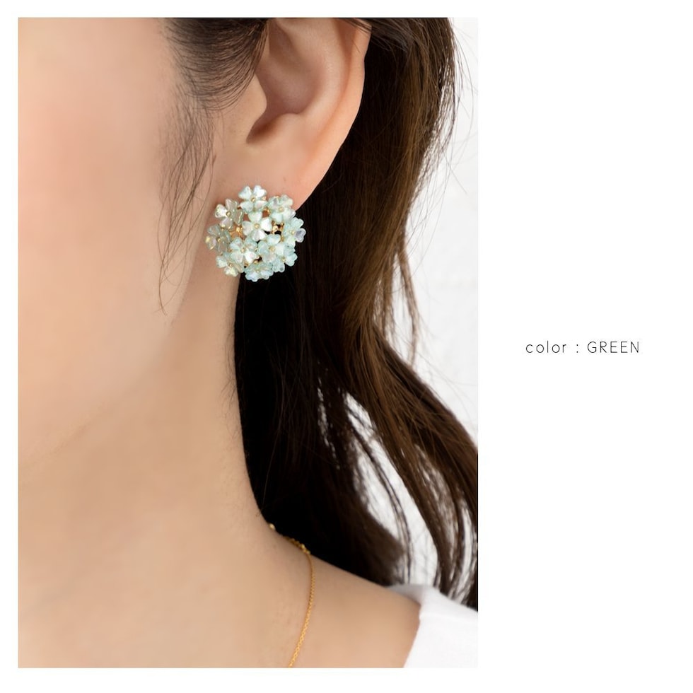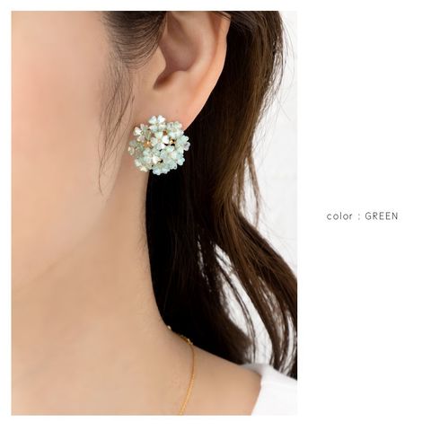 ピアス イヤリング レディース シリコンカバー ブーケ フラワー パヴェ 大ぶり ネジ式 グレー cream dot ゆうパケット [グリーン_イヤリング]