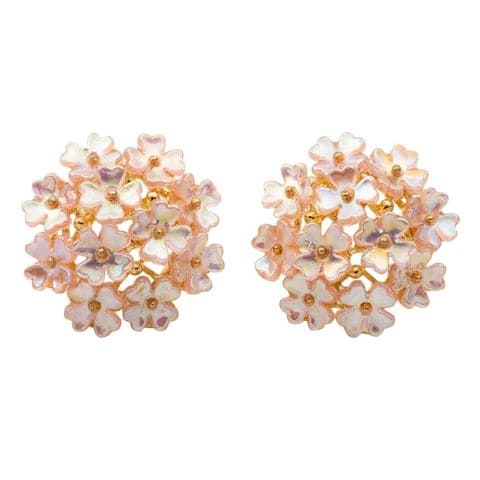 小花を集めた花束のようなデザインが女心くすぐるピアス/イヤリング。無数のフラワーがボリューミーで、淡く艶めく落ち着いた色合いが可愛くなり過ぎず大人レディな印象に。これからの季節にぴったりなアイテムです。