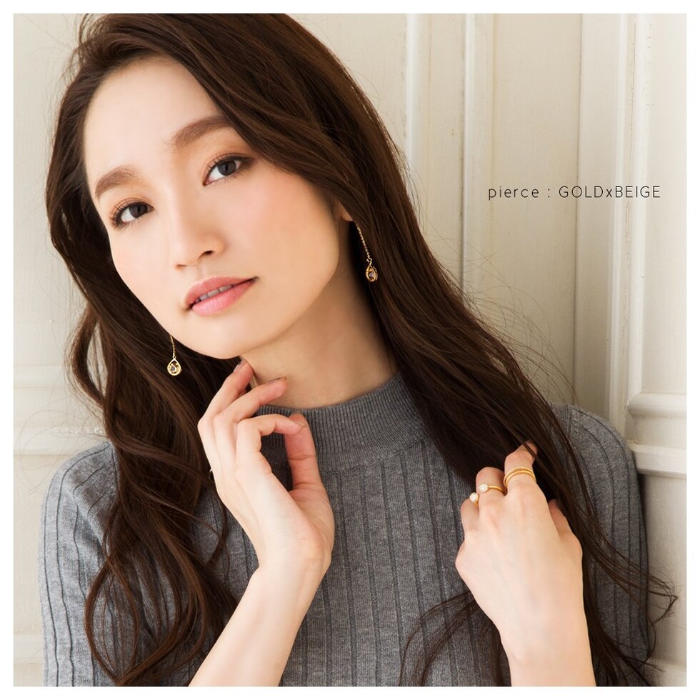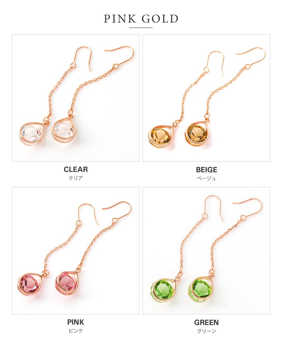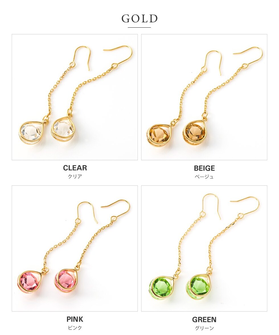 ピアス イヤリング 金属アレルギー ニッケルフリー レディース カラービジュー ロングチェーン フック に見える 揺れる cream dot ゆうパケット [ピアス:ピンクゴールド_ベージュ]