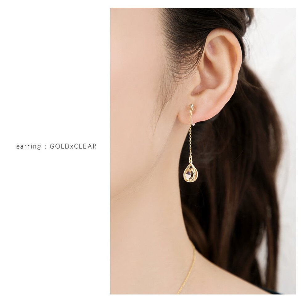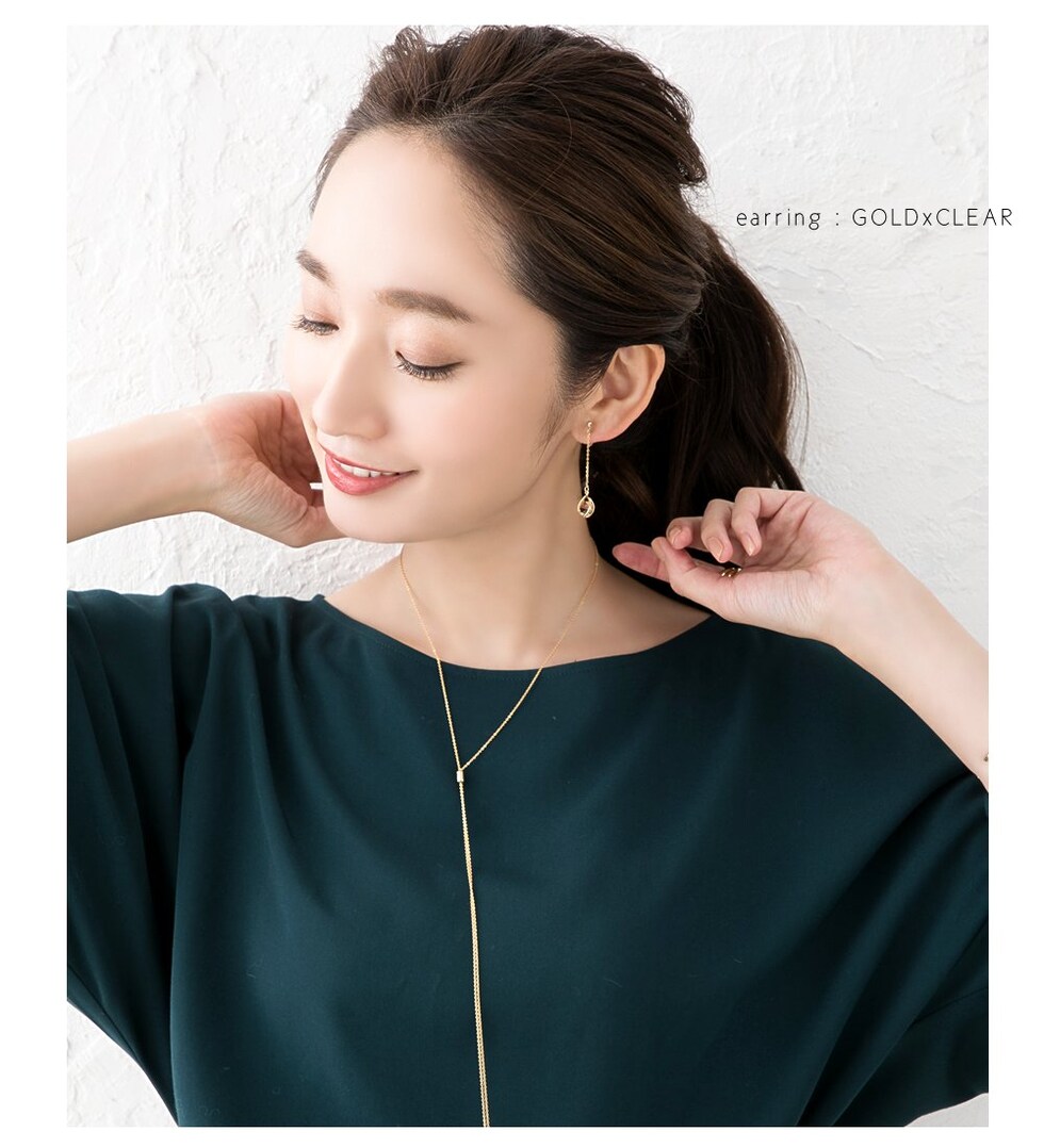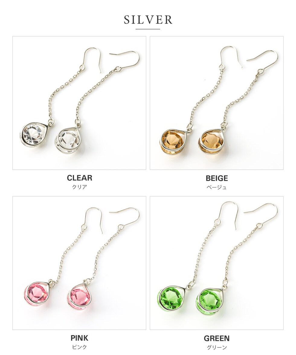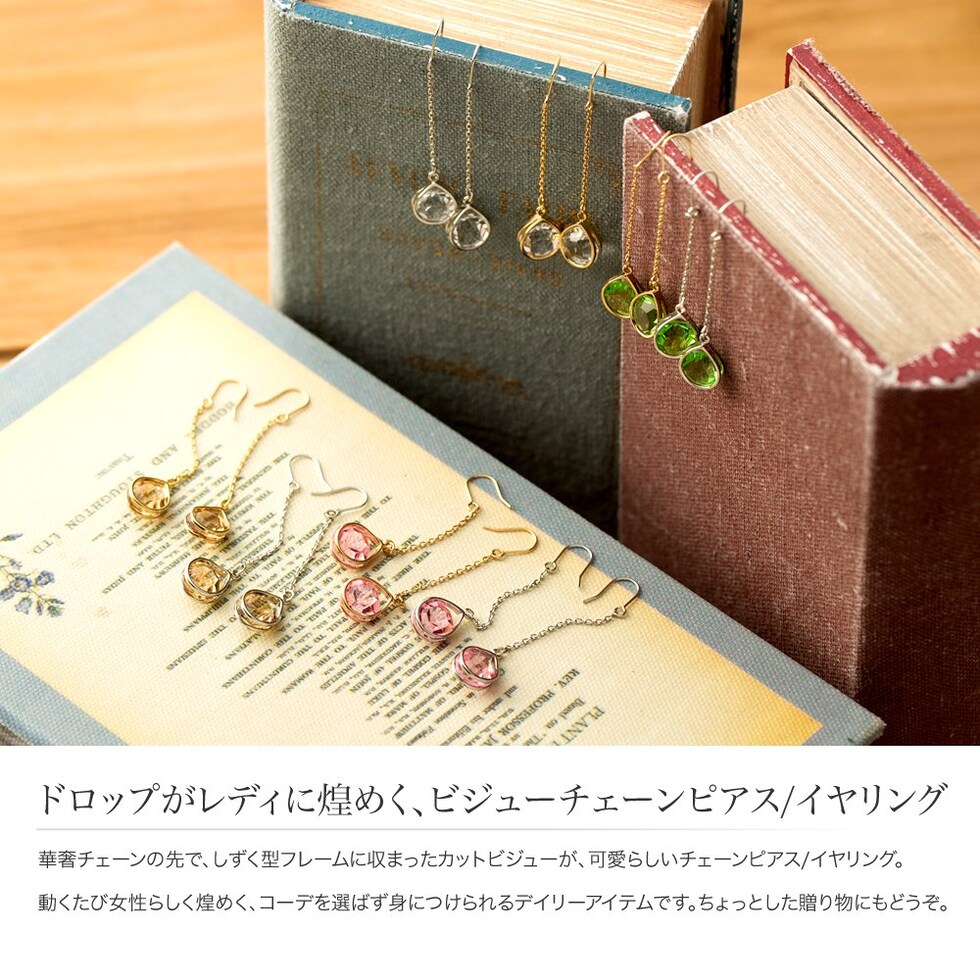 ピアス イヤリング 金属アレルギー ニッケルフリー レディース カラービジュー ロングチェーン フック に見える 揺れる cream dot ゆうパケット [ピアス:ピンクゴールド_ベージュ]
