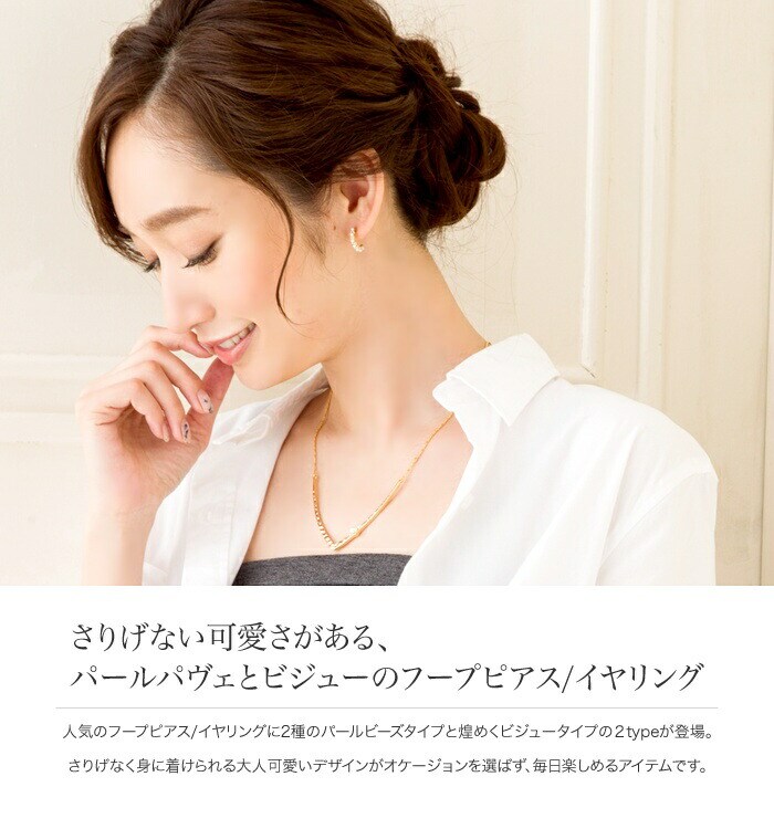 人気のフープピアス/イヤリングに2種のパールビーズタイプと煌めくビジュータイプの2typeが登場。