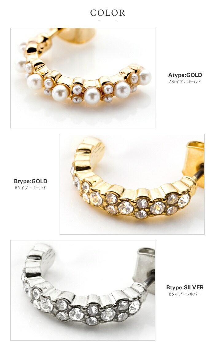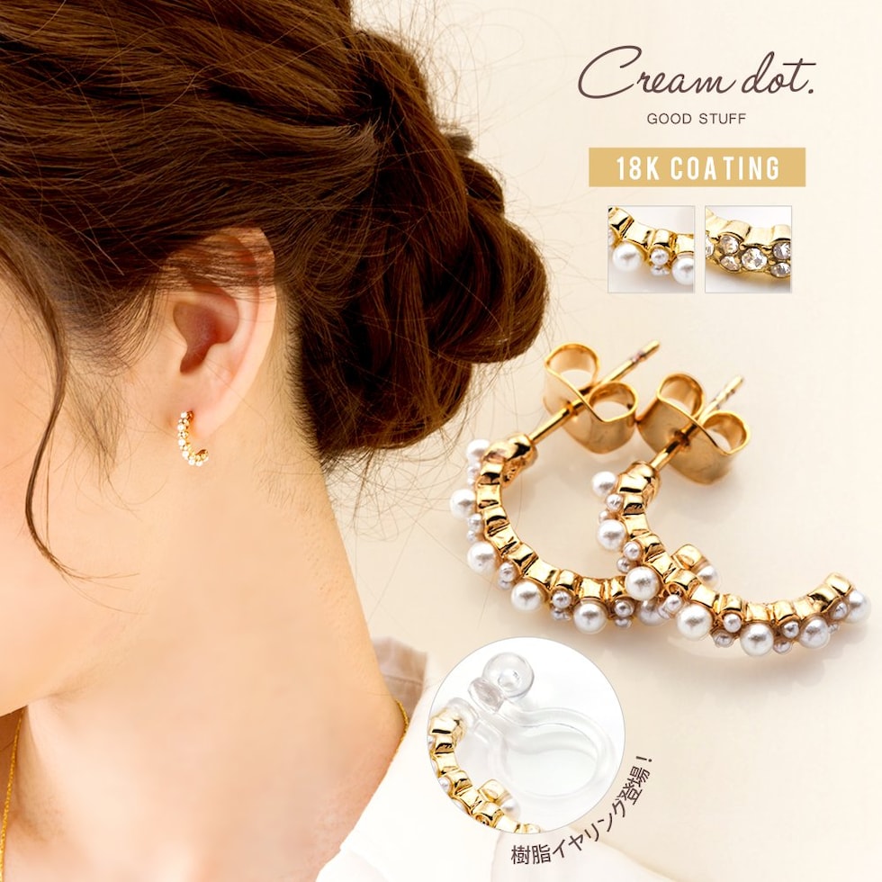 ピアス イヤリング レディース パヴェ フープ フープ パール ビジュー アクセサリー cream dot ゆうパケット [Bタイプ:シルバー_ピアス]