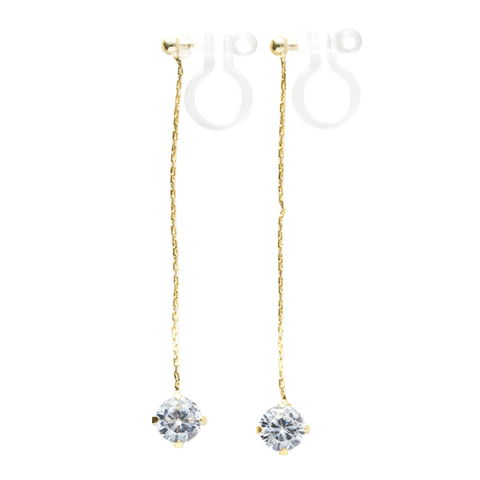 ピアス 金属アレルギー ニッケルフリー レディース 一粒ジルコニア 金属アレルギー対応 ロング チェーン 揺れる cream dot ゆうパケット [ゴールド_イヤリング]