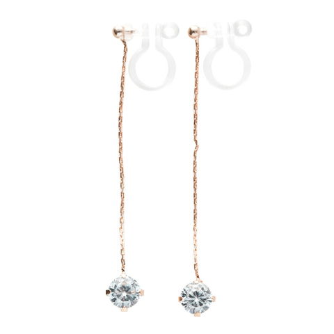 ピアス 金属アレルギー ニッケルフリー レディース 一粒ジルコニア 金属アレルギー対応 ロング チェーン 揺れる cream dot ゆうパケット [ピンクゴールド_イヤリング]