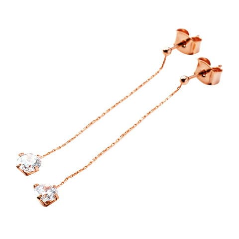 ピアス 金属アレルギー ニッケルフリー レディース 一粒ジルコニア 金属アレルギー対応 ロング チェーン 揺れる cream dot ゆうパケット [ピンクゴールド_ピアス]