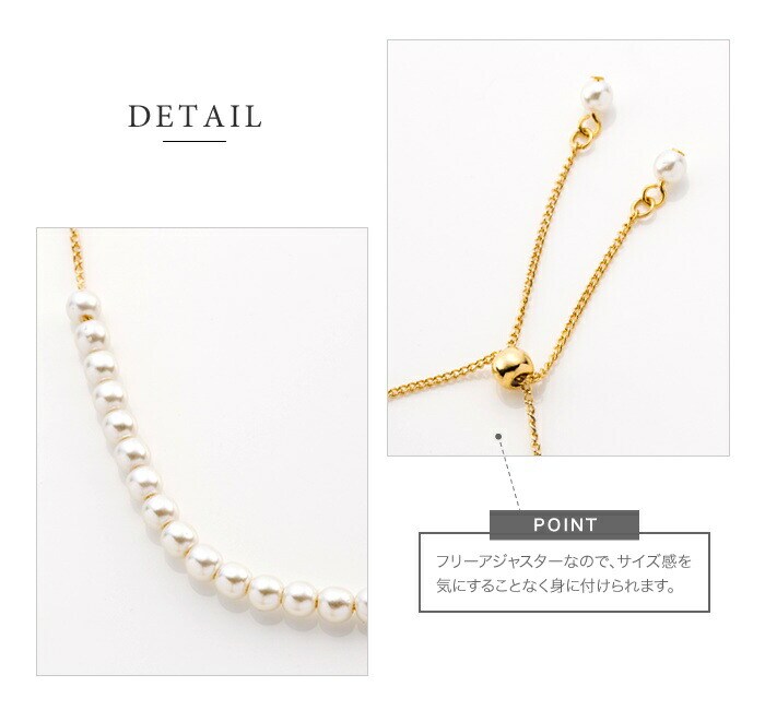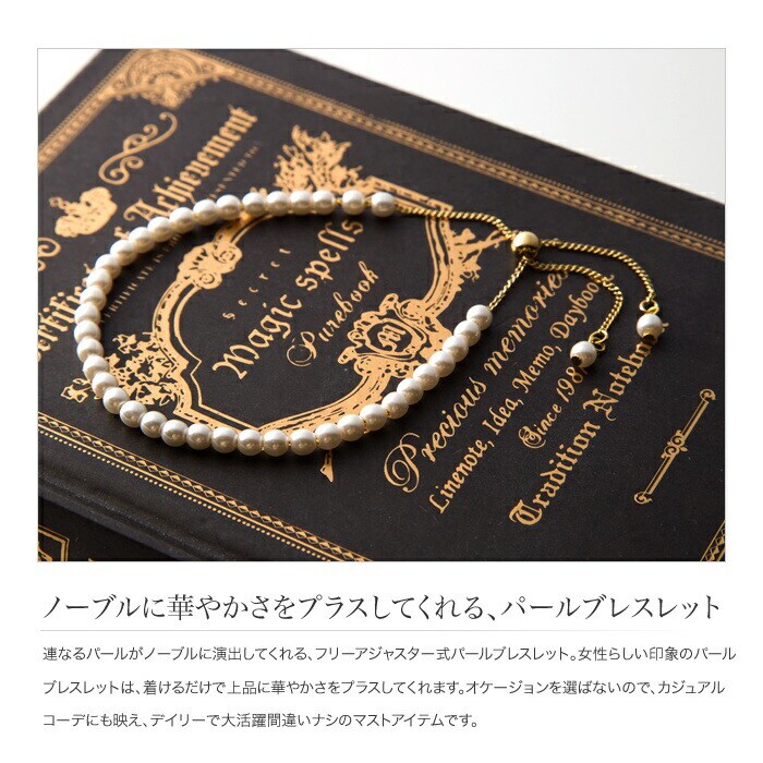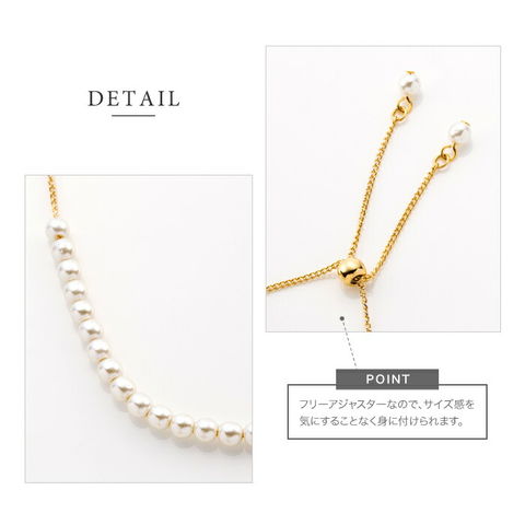 連なるパールがノーブルに演出してくれる、フリーアジャスター式パールブレスレット。