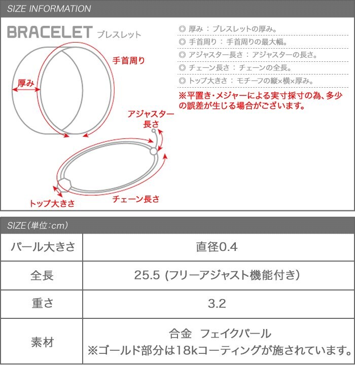 ブレスレット レディース フリーアジャスター パール 冠婚葬祭 入学式 卒業式 アクセサリー cream dot ゆうパケット [ゴールド_ワンサイズ]