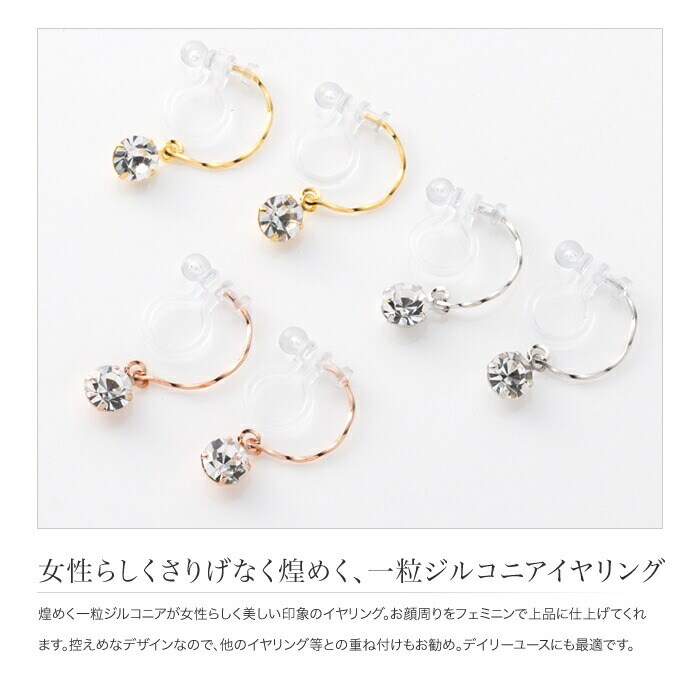 煌めく一粒ジルコニアが女性らしく美しい印象のイヤリング。