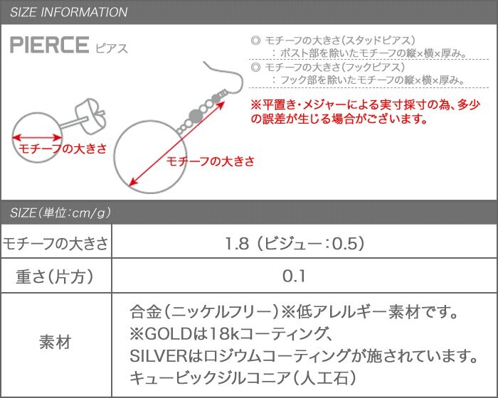 モチーフの大きさ:1.8cm (ビジュー:0.5cm)