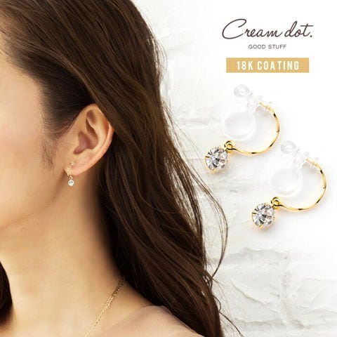 ピアス イヤリング 金属アレルギー ニッケルフリー レディース フープ 一粒 ビジュー アクセサリー cream dot ゆうパケット [ゴールド_ワンサイズ]