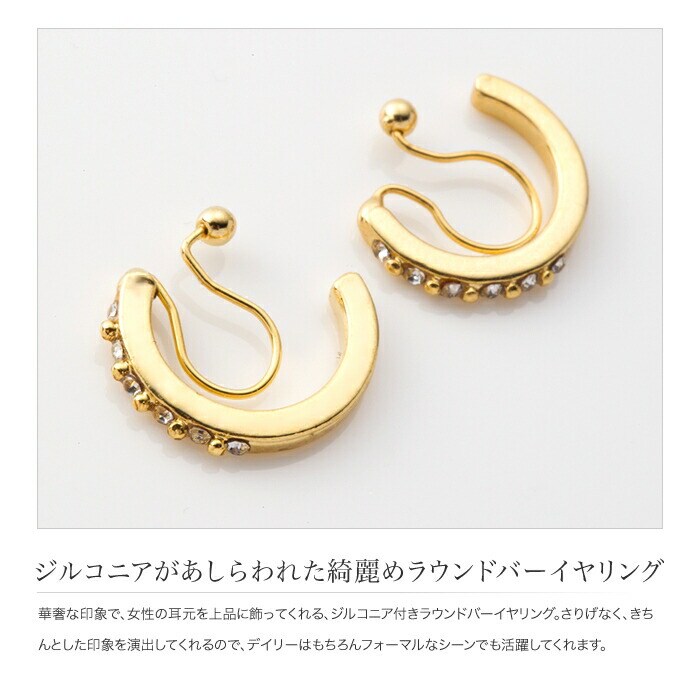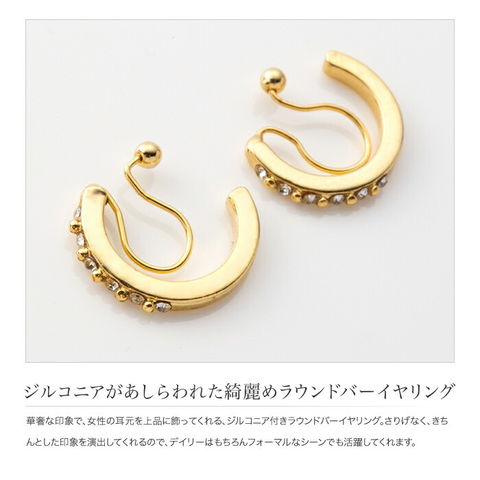 華奢な印象で、女性の耳元を上品に飾ってくれる、ジルコニア付きラウンドバーイヤリング。