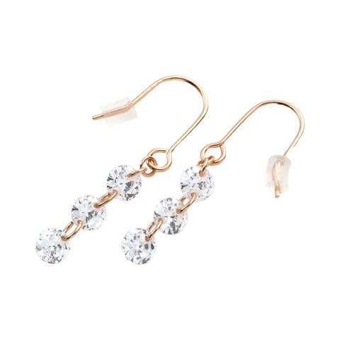 3粒のジルコニアが可憐に揺れる華奢めピアス/イヤリング。動くたびにキラキラと輝き揺れて、お顔周りを華やかにより女らしく印象付けます。コーデの邪魔にならない華奢デザインだからどんなシーンにも◎