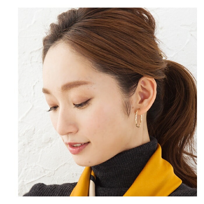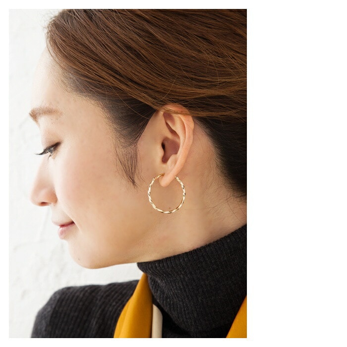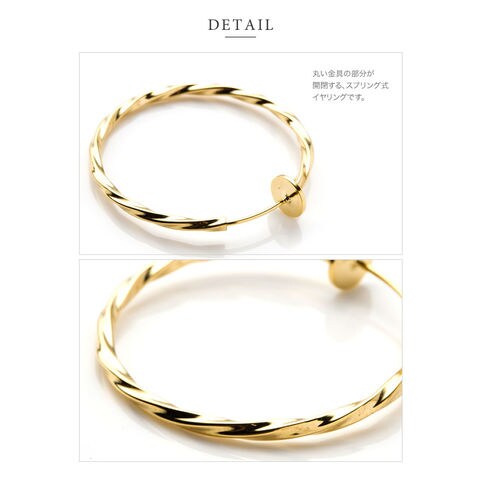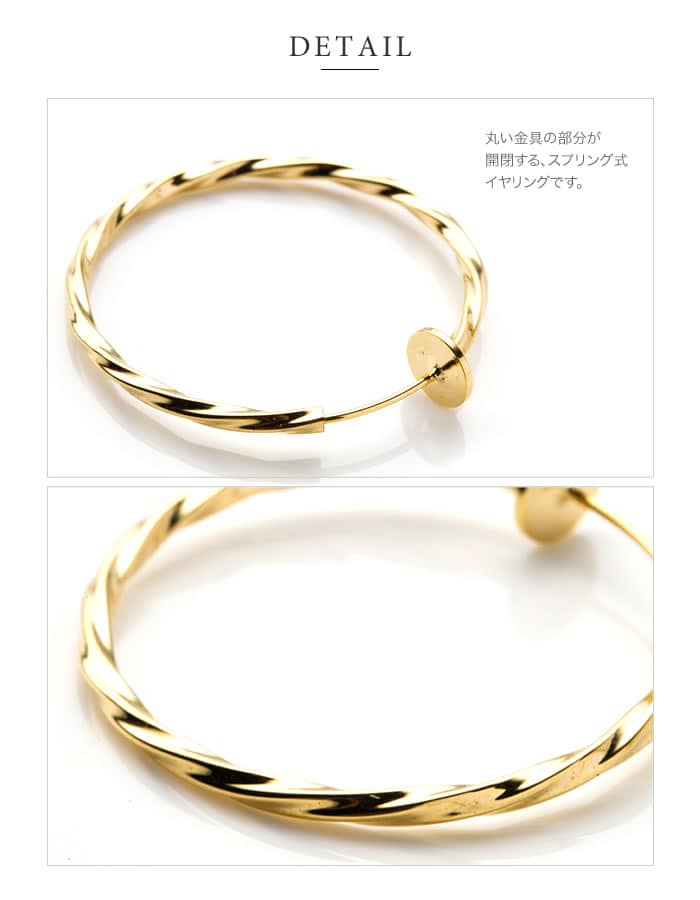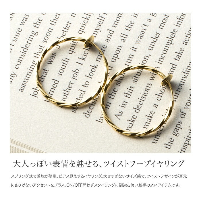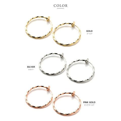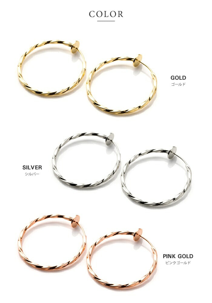 ピアス 金属アレルギー ニッケルフリー レディース ツイスト ひねり フープ スプリング式 バネ式 簡単着脱 見え cream dot ゆうパケット [シルバー_イヤリング]