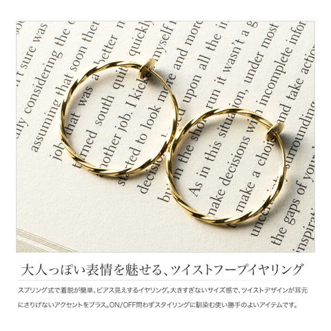 スプリング式で着脱が簡単、ピアス見えするイヤリング。