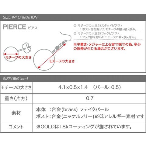 ピアス 金属アレルギー ニッケルフリー レディース フック バーフック パール 一粒 め 小物 ファッション レディース cream dot ゆうパケット [ゴールド_ピアス]
