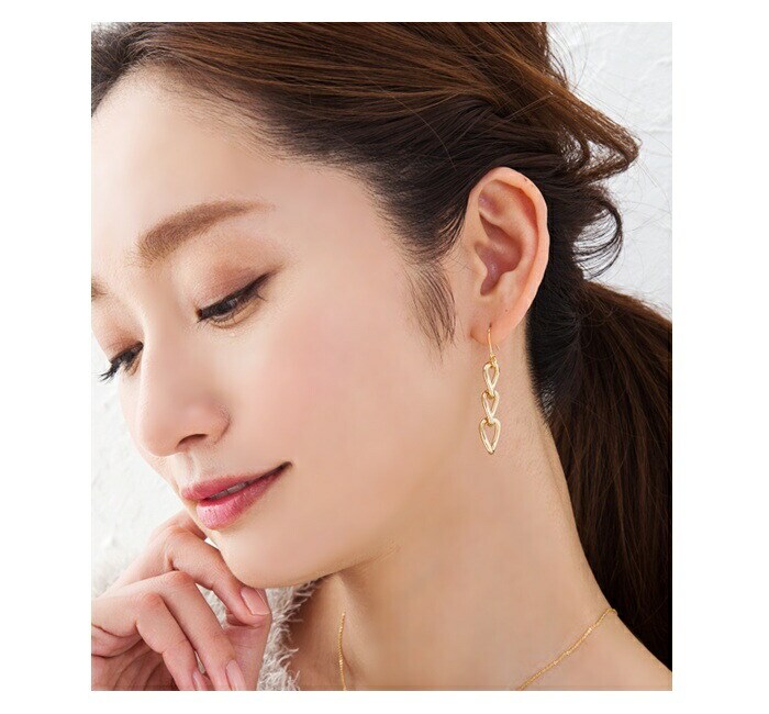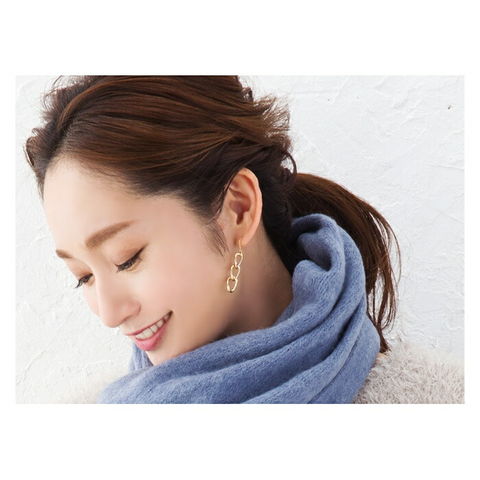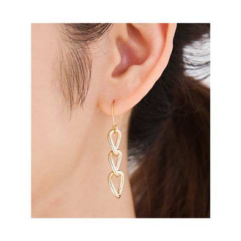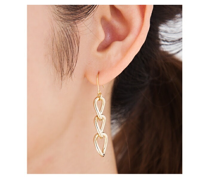 ひねりの効いたドロップ型の3粒チェーンが揺れる大人っぽいピアス。