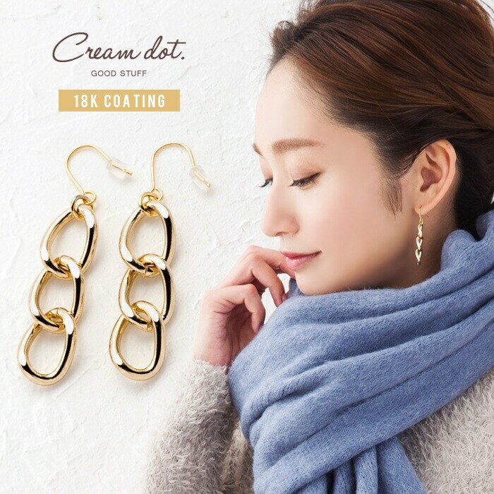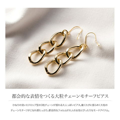 ピアス 金属アレルギー ニッケルフリー レディース 3連 チェーン モチーフ メタル 揺れる スイング 大ぶり フック アクセサリー レディース cream dot ゆうパケット [シルバー_ピアス]