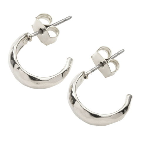 表面にたたき加工を施した小ぶりのフープイヤリング/ピアス。緩やかに幅の変わる丸みシェイプが女性らしい印象で、さりげなくお顔周りを大人華やかに演出。シンプルなフォルムだからオフィス使いにもおすすめ◎