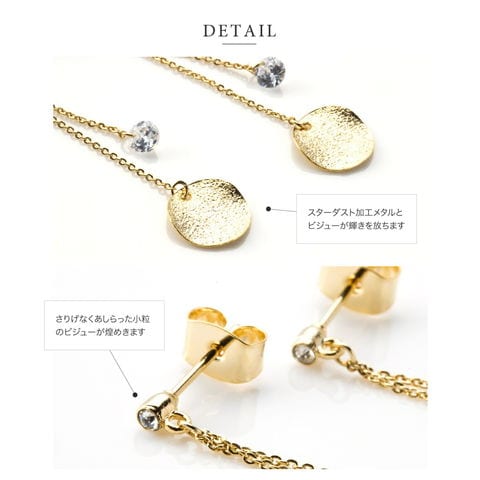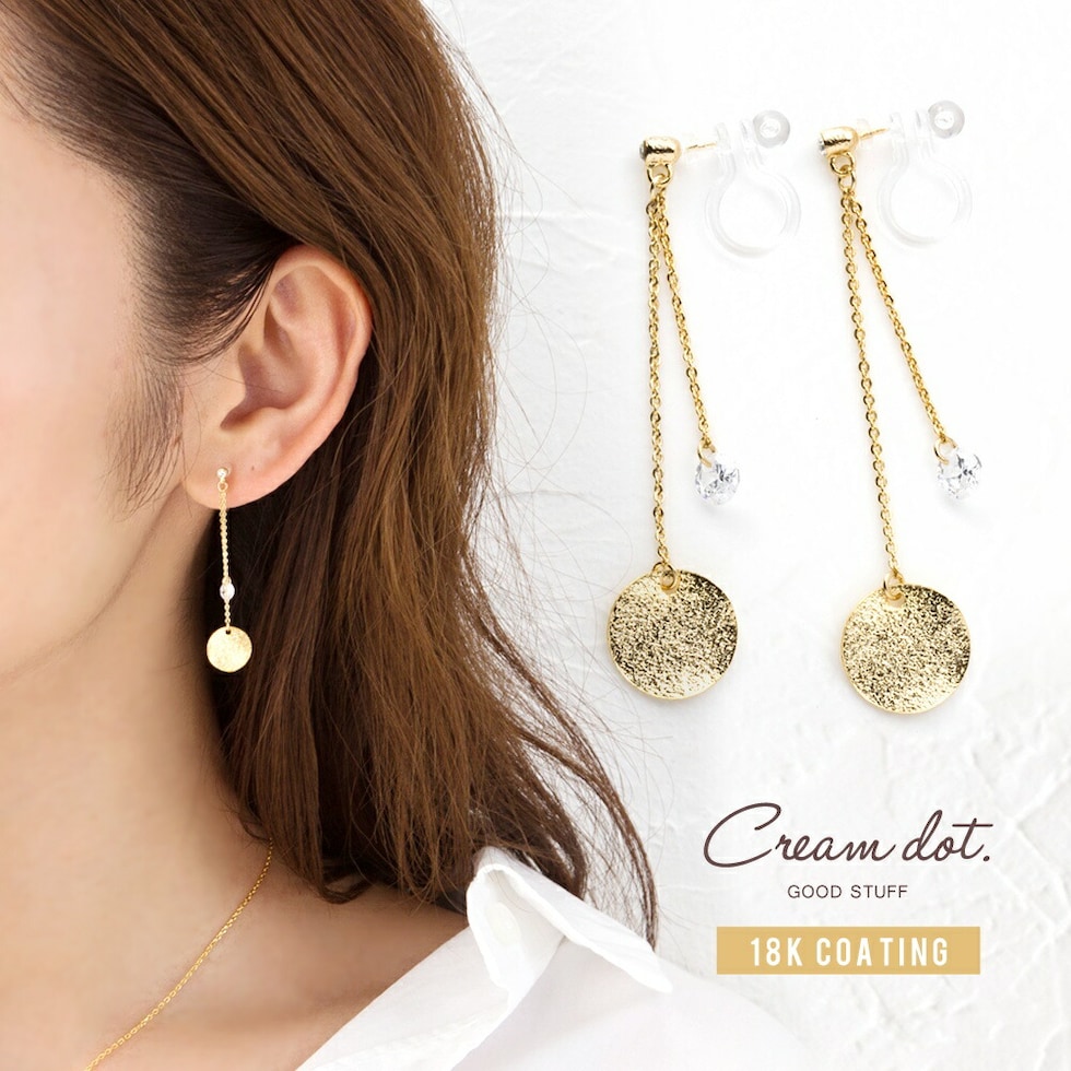 ピアス イヤリング 金属アレルギー ニッケルフリー レディース ロング 揺れる キュービックジルコニア cream dot ゆうパケット [ピンクゴールド_ピアス]