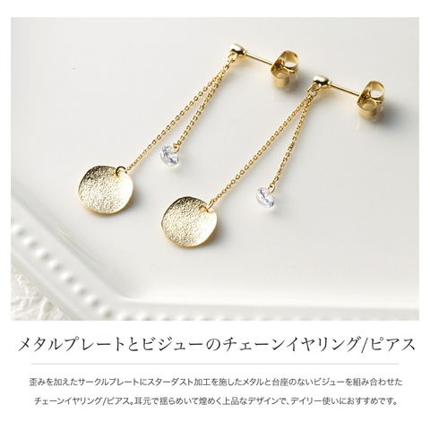 台座のないビジューを組み合わせたチェーンイヤリング/ピアス。