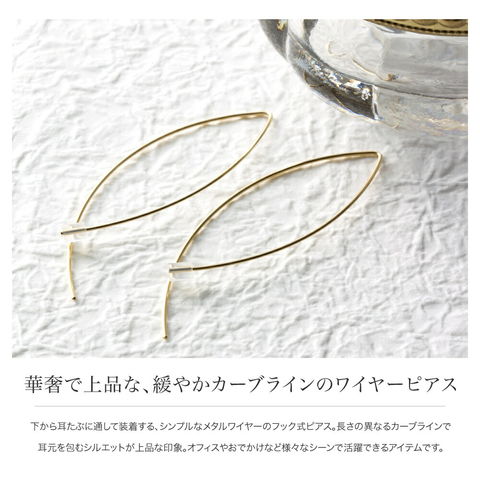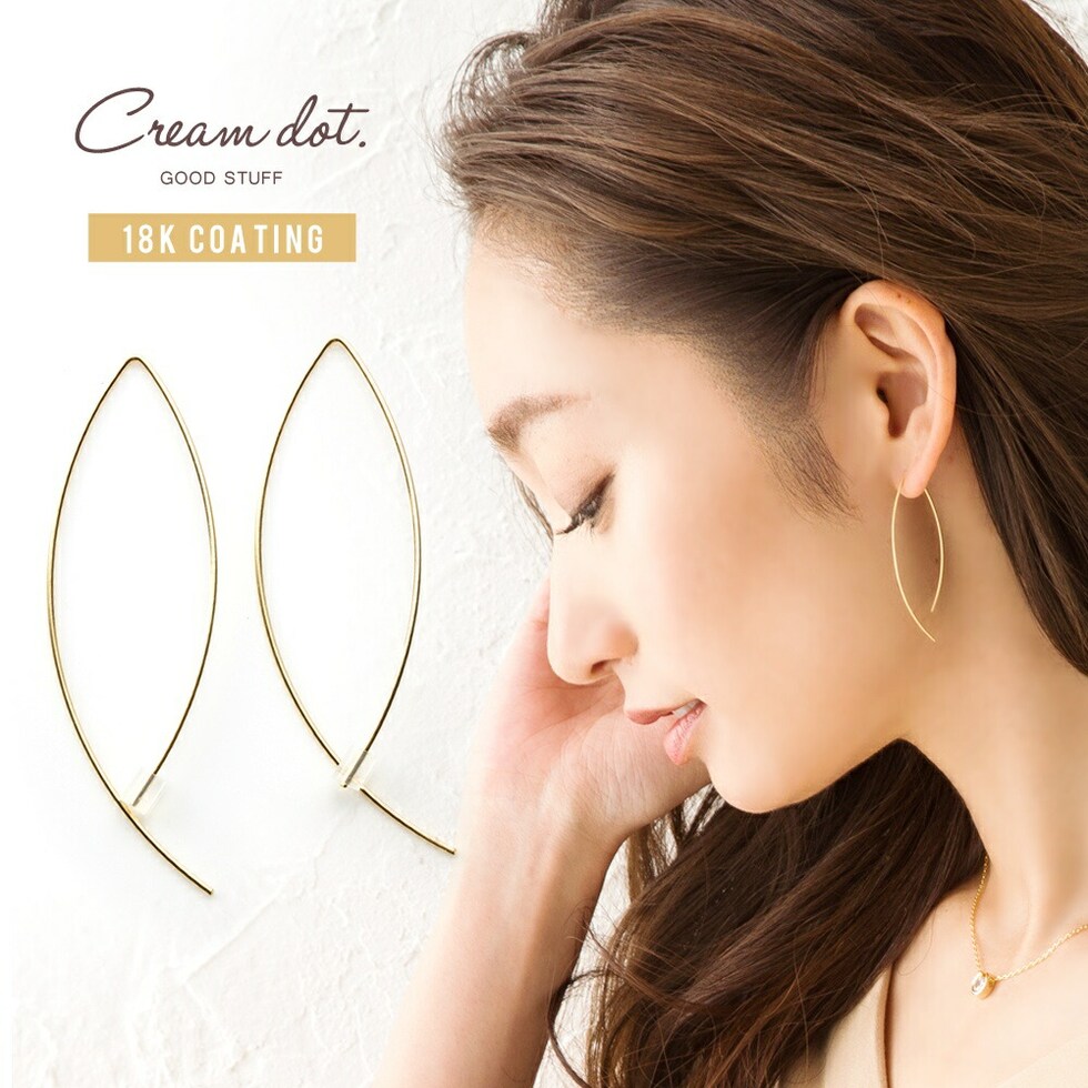 ピアス 金属アレルギー ニッケルフリー レディース ワイヤーフック メタル バーフック カーブライン アーモンドライン cream dot ゆうパケット [シルバー_ピアス]
