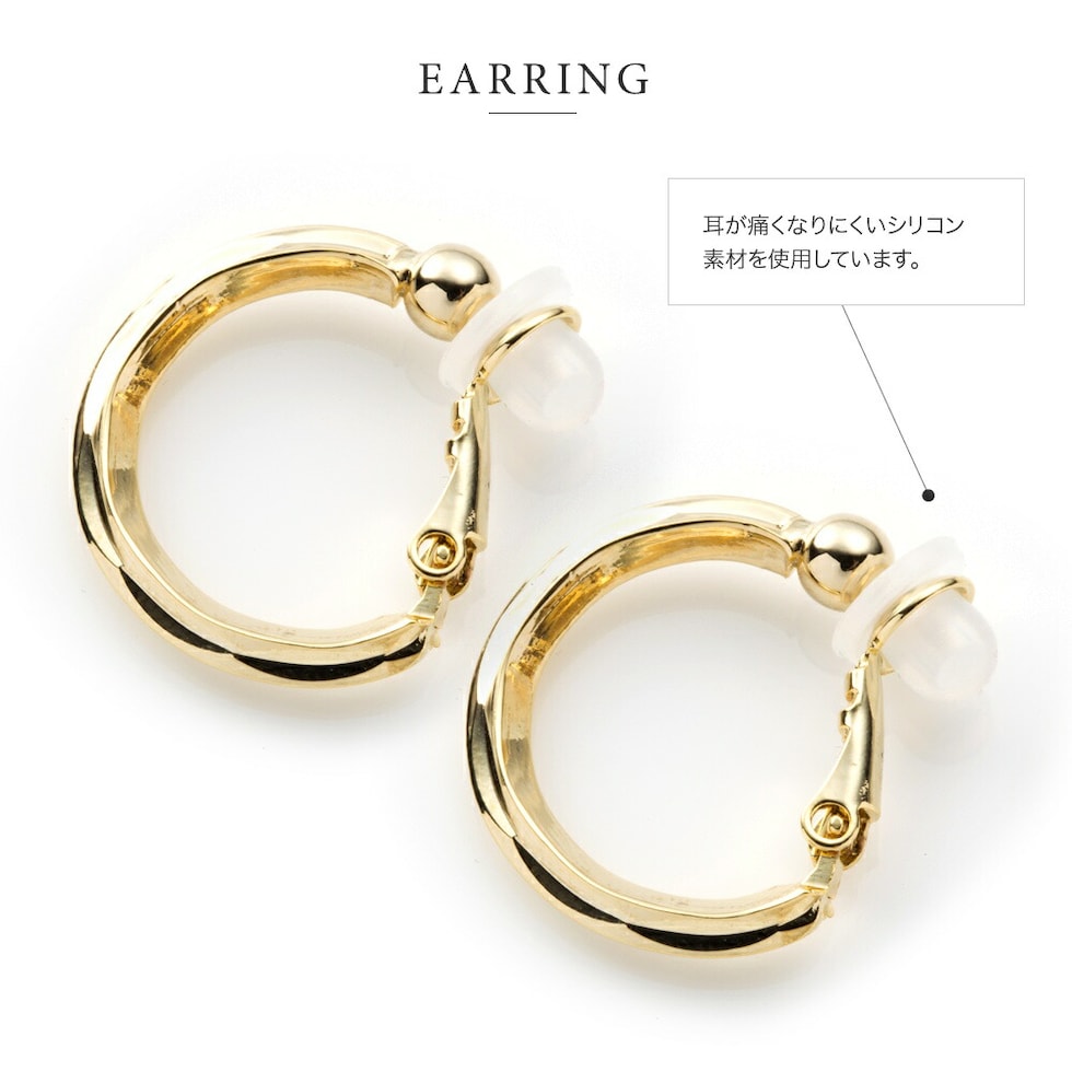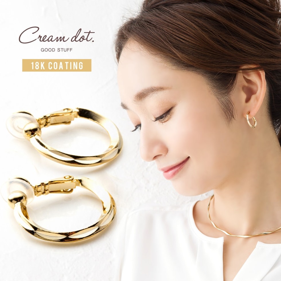 イヤリング ピアス 金属アレルギー ニッケルフリー レディース フープ キャッチレス シリコンカバー クリップ式 cream dot ゆうパケット [ゴールド_ピアス]