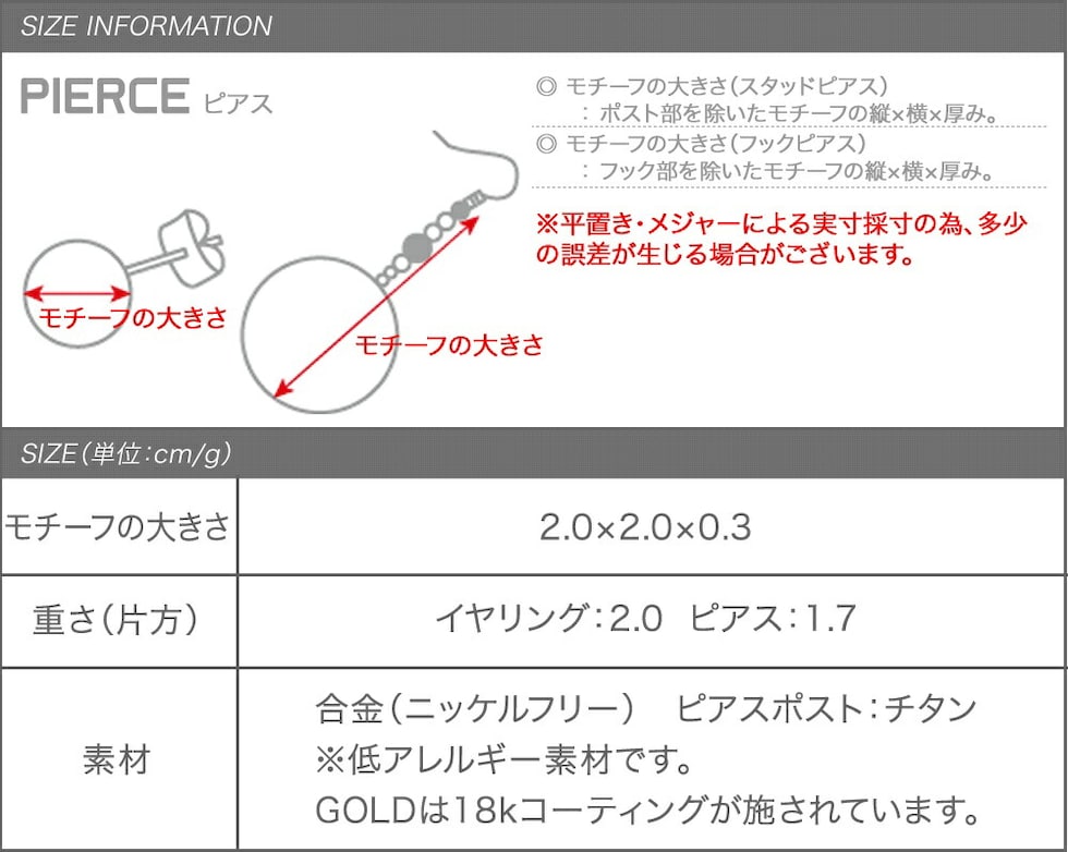 イヤリング:2.0g/ピアス:1.7g