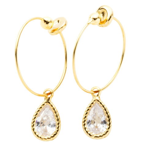 大人の女性らしい上品なモチーフが耳元で揺れて煌めくフープイヤリング。