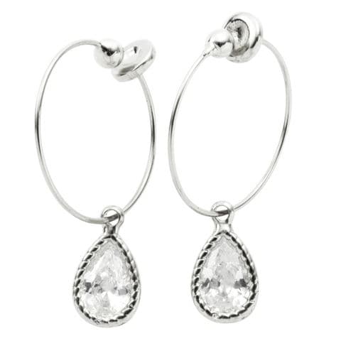大人の女性らしい上品なモチーフが耳元で揺れて煌めくフープイヤリング。