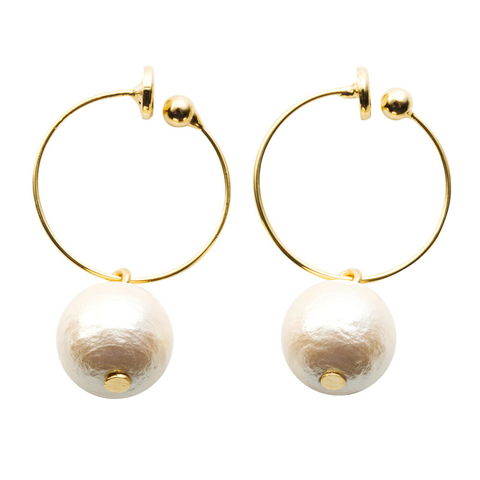 イヤリング 金属アレルギー ニッケルフリー レディース 3タイプ フープ バネ式 揺れる 一粒ビジュー コットンパール ドロップ cream dot ゆうパケット [C:ゴールド_イヤリング]
